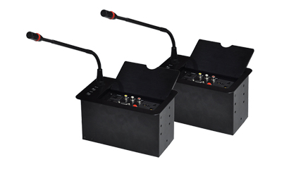 一路视频和一路立体声音频RCA接口; 一个标准DB15针VGA对接式接口; 两个RJ45网络接口; 一个万能电源插座; 一个点触式控制按钮; 内置会议发言功能,话筒参数同MS-80A/B; 水平嵌入于桌面,掀盖式; 嵌入式尺寸:201(长)×121(宽)mm;